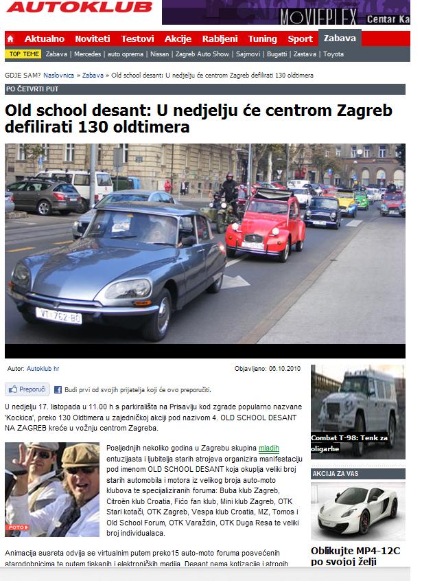 a kvaliteta druženja izmeðu klubova, vlasnika i ljubitelja starodobnika po prvi puta se nadogradila u velikom broju graðana zagreba koji su zahvaljujuæi medijskom pritisku